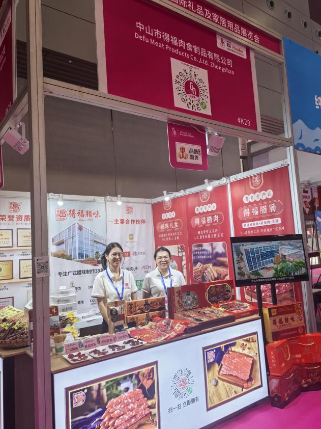在這場亞洲頂級禮業(yè)盛宴中,來自“中國臘味食品名鎮(zhèn)”的中山市得福肉食制品有限公司展臺格外搶眼——非遺工藝的匠心演繹、多元創(chuàng)新的產(chǎn)品矩陣,讓這抹傳承百年的廣式風(fēng)味成為展會焦點。