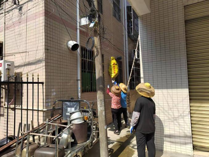 自建房天臺常年堆積舊家具、破紙箱、廢棄花盆等雜物,不僅孳生蚊蟲,還存在安全隱患。攻堅(jiān)小組創(chuàng)新采用“人鏈傳送帶”模式:在天臺與地面之間,隊(duì)員們分站不同樓層臺階,形成垂直傳遞鏈條,將較輕的塑料瓶、紙箱等垃圾逐層向下傳遞,直至地面收集點(diǎn)。遇到建筑垃圾等重型垃圾,隊(duì)員們則用結(jié)實(shí)的尼龍繩將其牢牢捆扎,確保垃圾平穩(wěn)落地,避免碰撞墻體造成損壞。與此同時,攻堅(jiān)小組同步推進(jìn)閑置地塊、閑置房屋與冷巷清理,10月20日累計(jì)清理閑置地1.7畝、閑置房屋14間、冷巷33條、屋頂天臺989處。