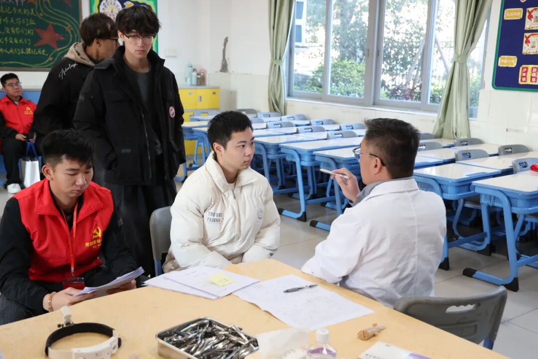 體檢現(xiàn)場,應(yīng)征青年在街道體檢保障人員的引導(dǎo)下,依次排隊進入內(nèi)科、外科、五官科、眼科、口腔科等檢查區(qū)域,秩序井然。南朗醫(yī)院醫(yī)務(wù)人員嚴(yán)格按照《應(yīng)征公民體格檢查標(biāo)準(zhǔn)》(2022年版)和體檢流程,認真核對身份信息,逐項檢查身高、體重、血壓、視力、聽力等項目,確保不漏檢、不誤檢,嚴(yán)把兵員質(zhì)量第一關(guān)。